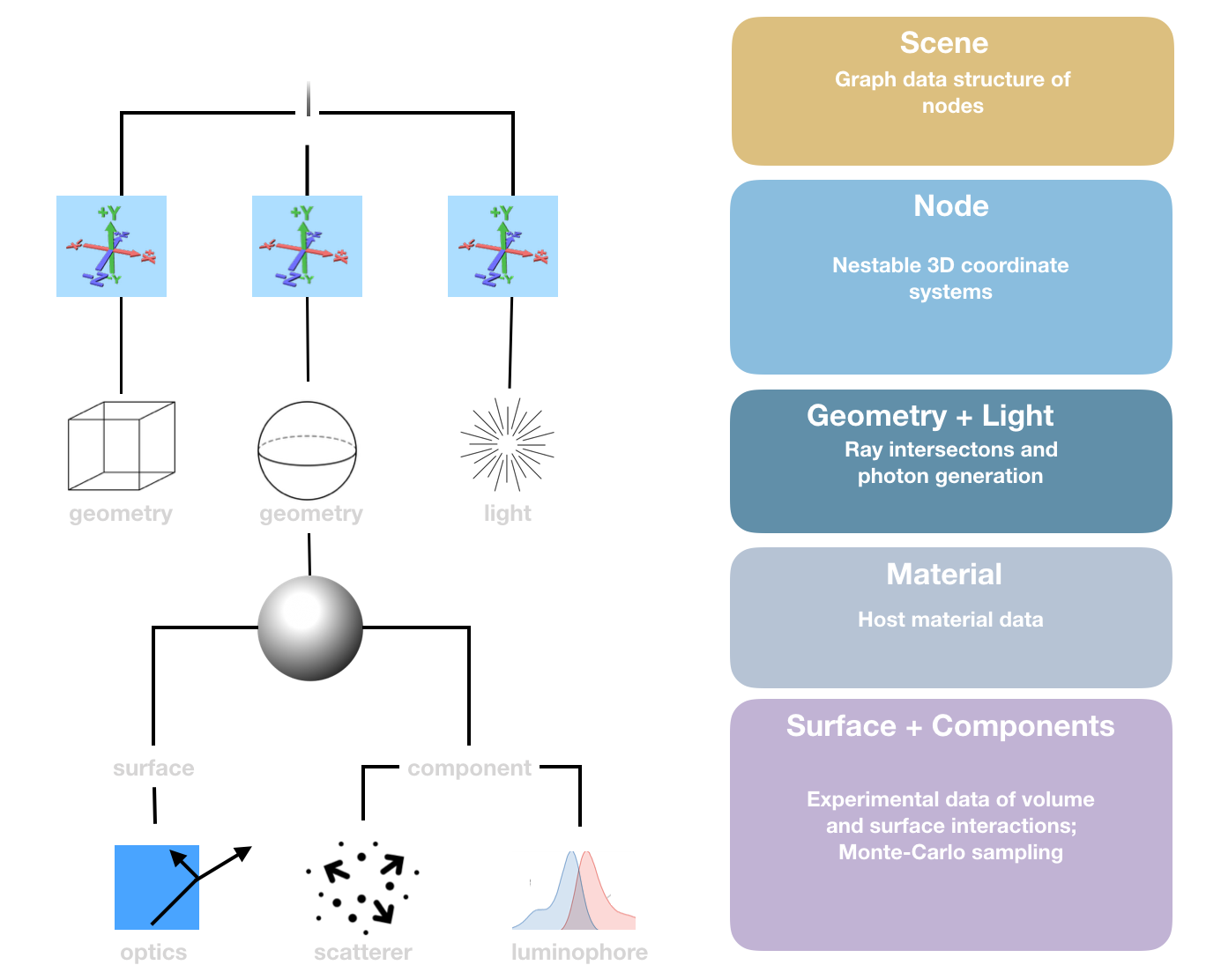 - Graph data structure of node and the thing that is ray-traced.