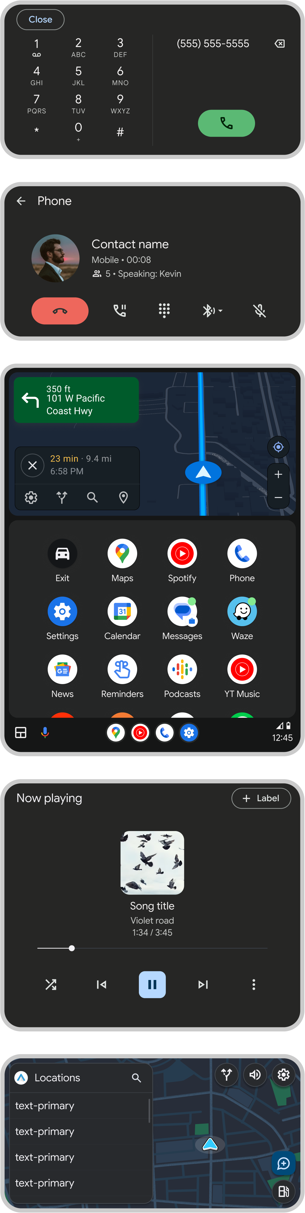 This kit includes a variety of components, templates, and dashboards provided by the Android for Cars App Library to design apps for the drive.